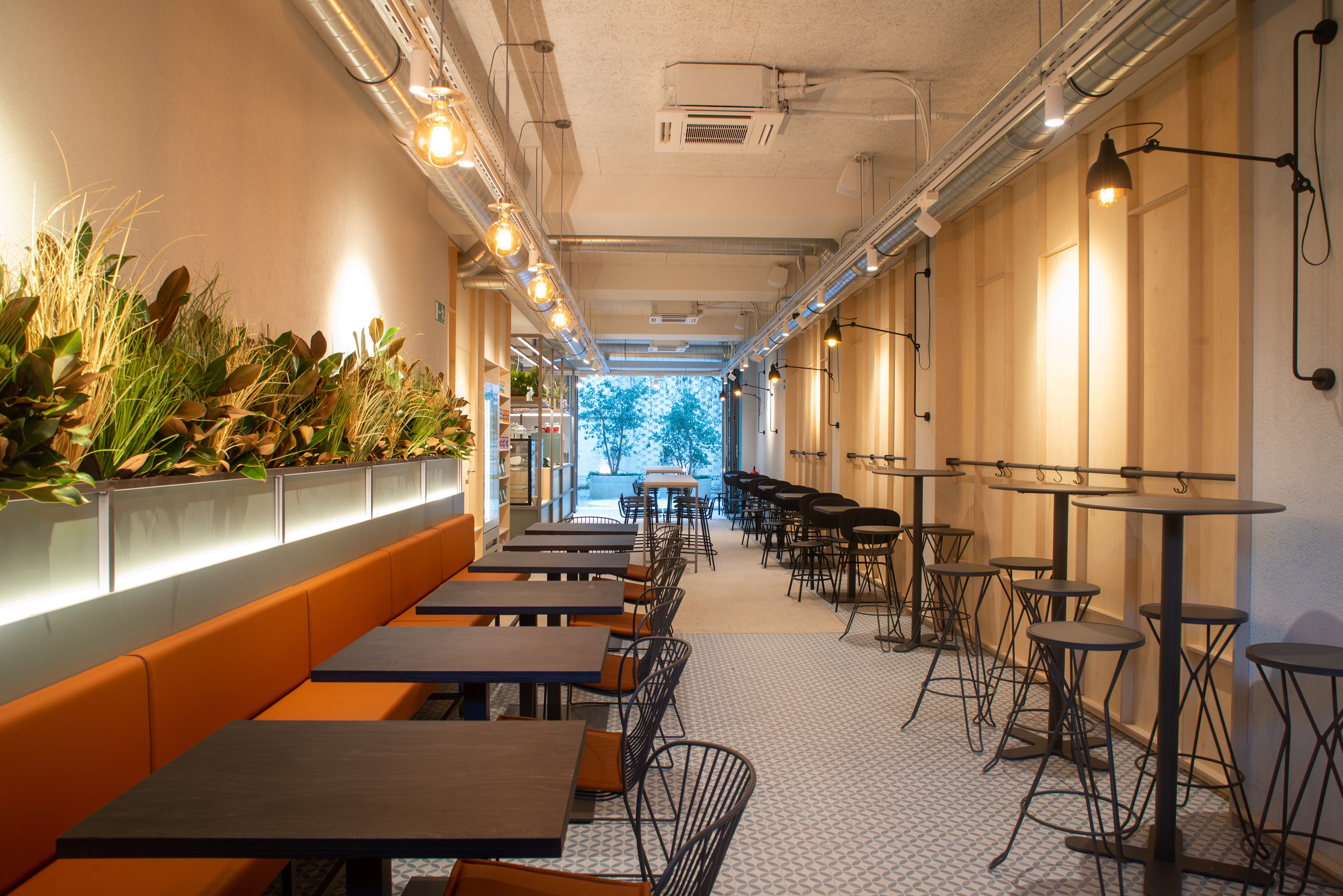 Cafeterías de barrio con un toque moderno. Dos con terraza y una con patio.